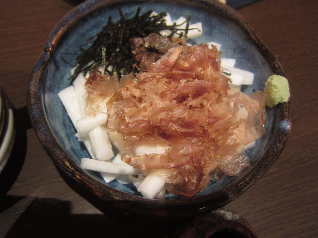 「長芋千六本」。ここの野菜や豆腐は美味しい。野菜にお酒を合わせたくなったので女将さんにお薦めを聞きました。