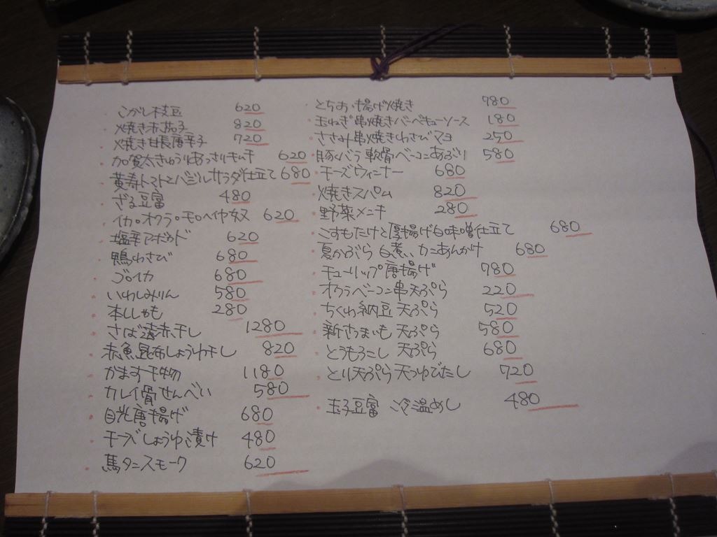 本日のお薦め。定番メニューもありますが肴はほとんどここからチョイスしました。