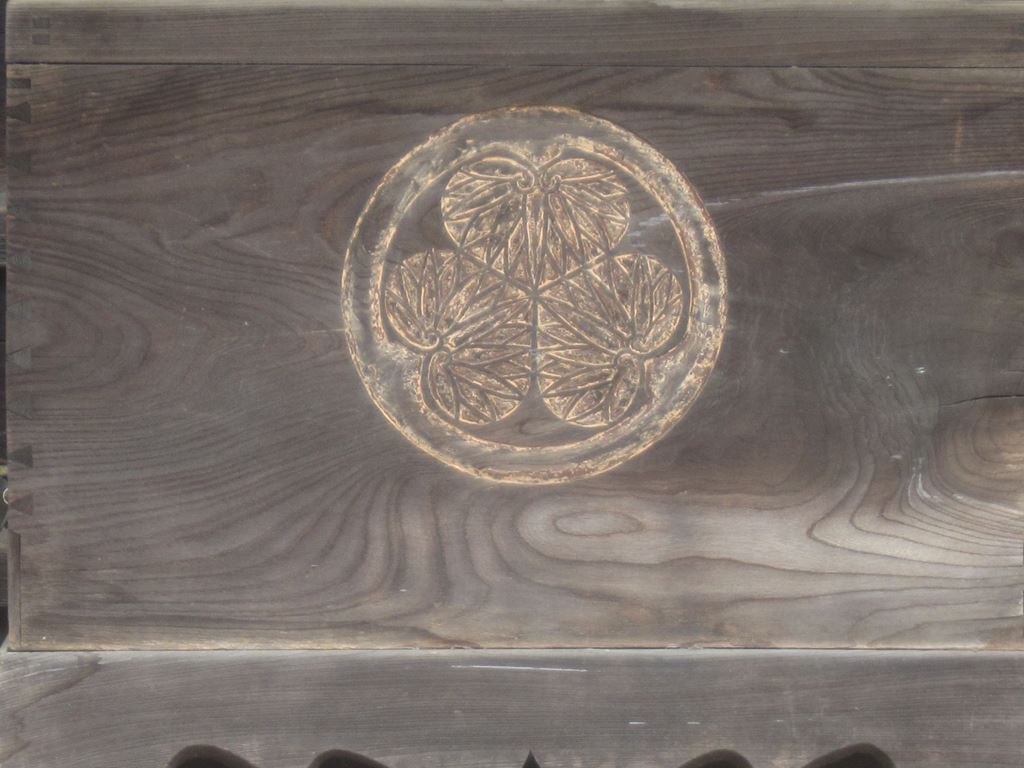 正面の賽銭箱には徳川の家紋が。これは「秀康」公が徳川の出身だからだろう。