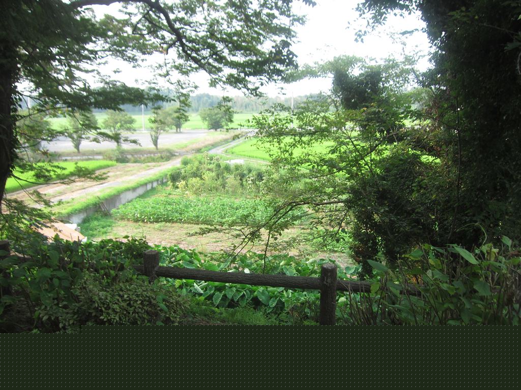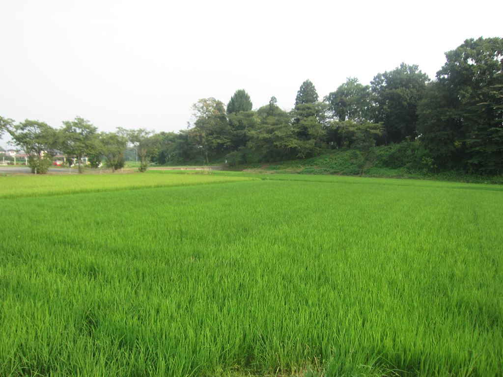 「結城城」。木々の手前、田の部分に「実城」と呼ばれる本丸があったそうだ。