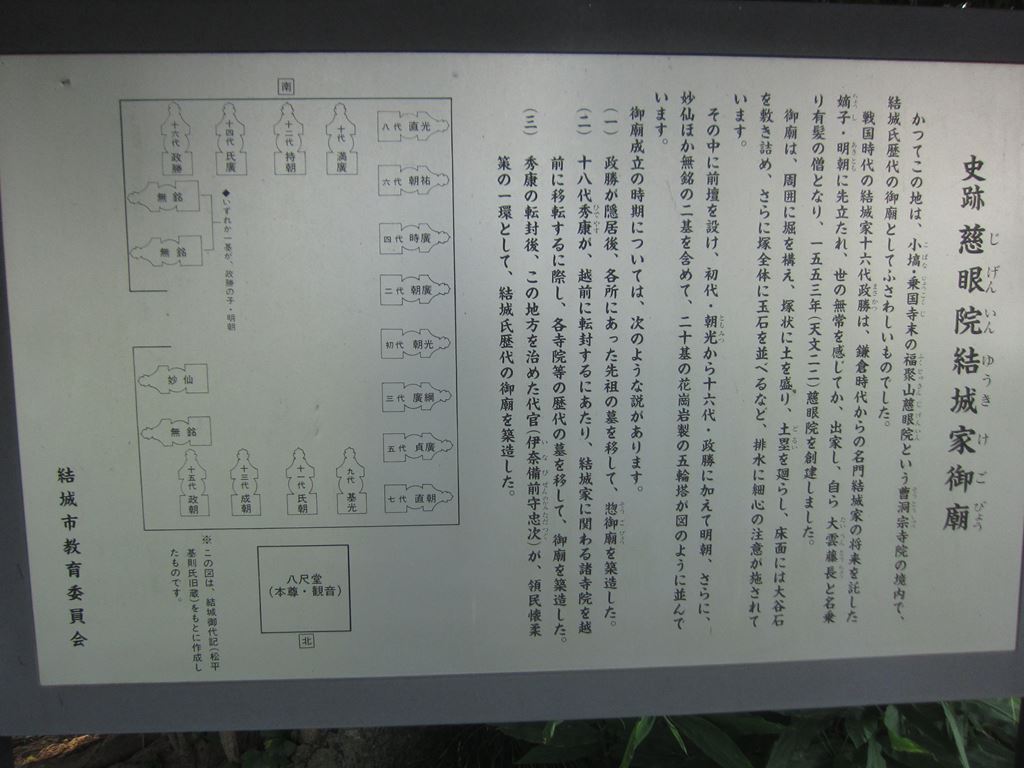 「慈眼院結城家御廟」。「結城城」から南へ徒歩20分の場所にある。