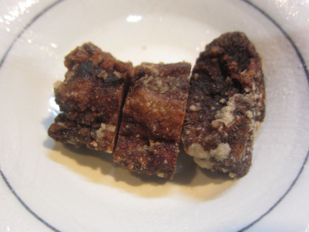 「鮪(血合い)」の竜田揚げ。お通しです。