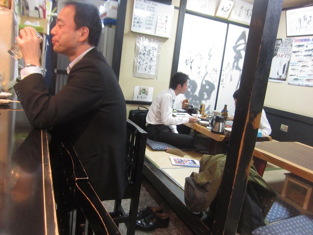 そして同じ鮪から刺身(気仙沼産)」。大勝いわく「色は悪いが味はいい」との事。確かに旨い。この厚みで出してくれて500円。