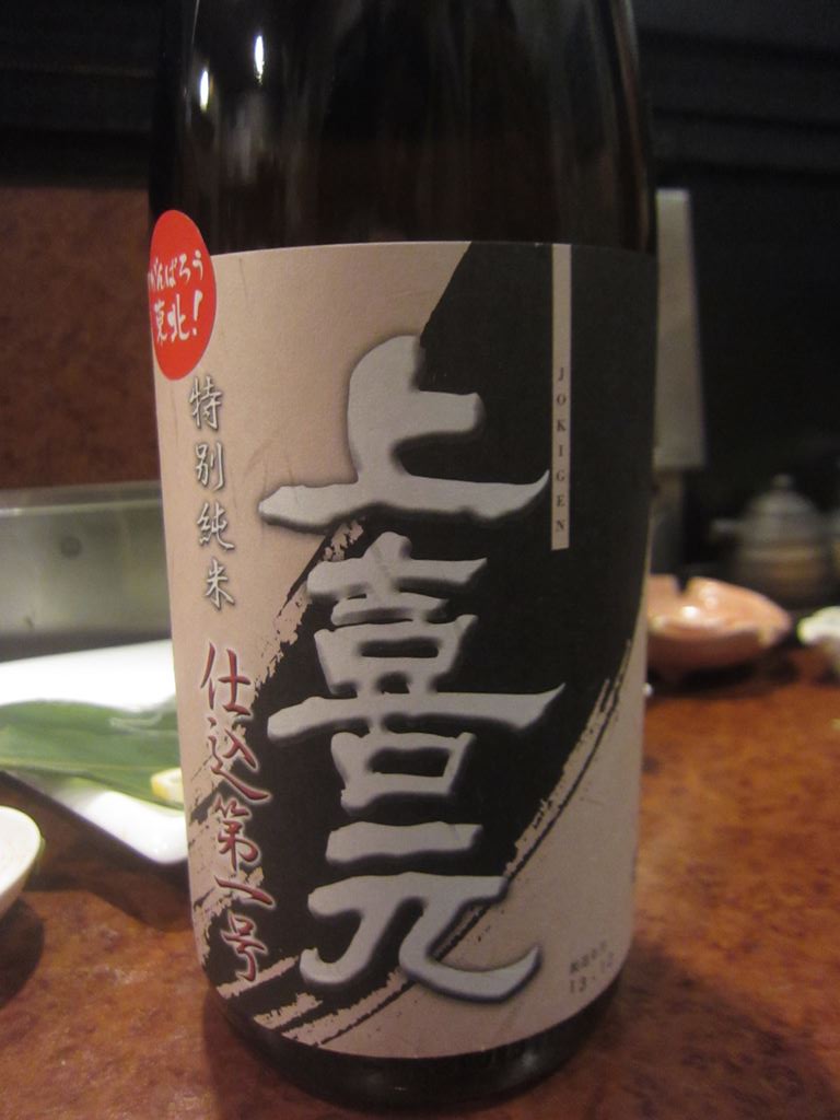 地酒は定期的に入れ替えているそう。今回は「山形の地酒フェア」。ここは半合から出してくれます。それじゃ久しぶりに「上喜元」を呑もうかな。