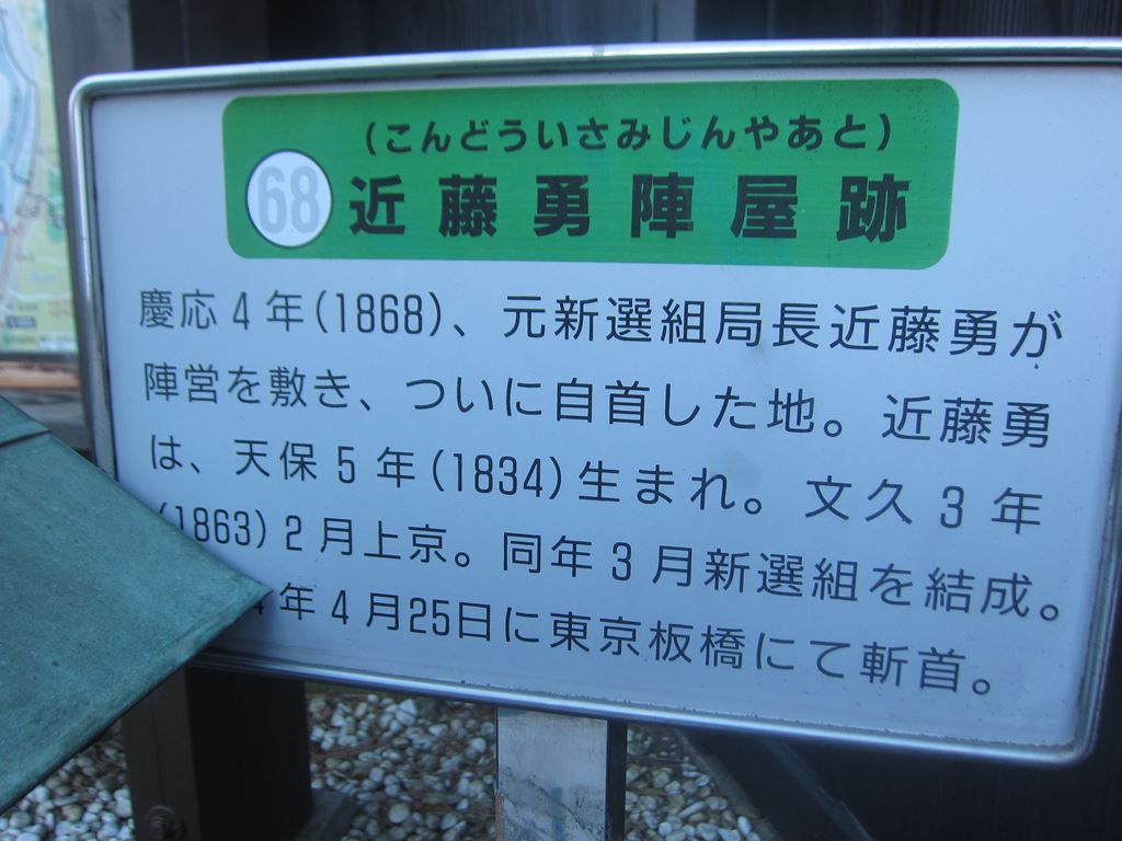 建物の中には入れませんが表には丁寧に説明された案内板が立っています。ここが「近藤勇」と「土方歳三」の今生の別れの地になったそうです。2人の無念に思いを巡らせて次に向ったのは‥