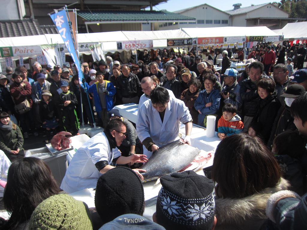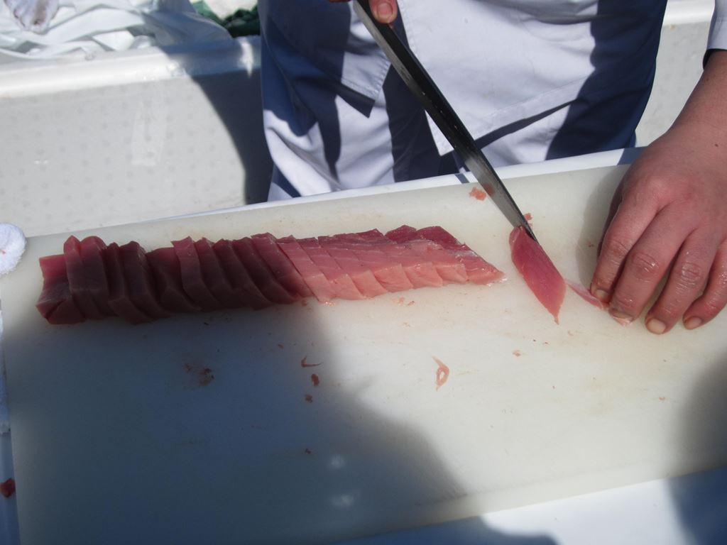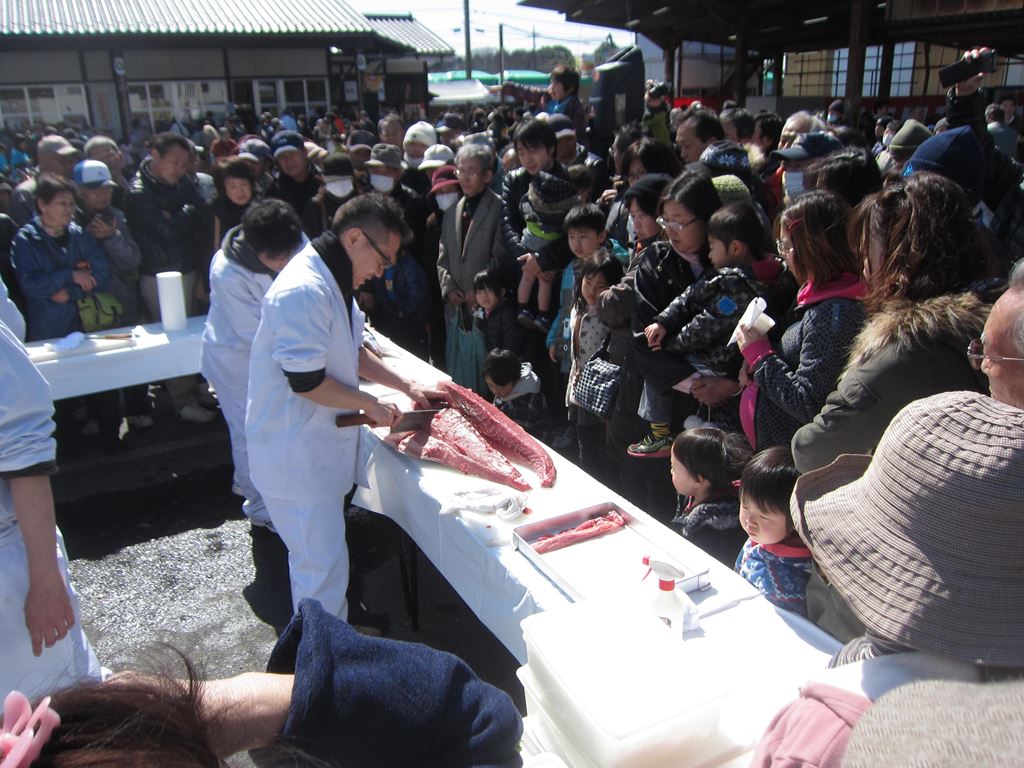 職人さん達のマグロをさばく姿に皆さん真剣でした。