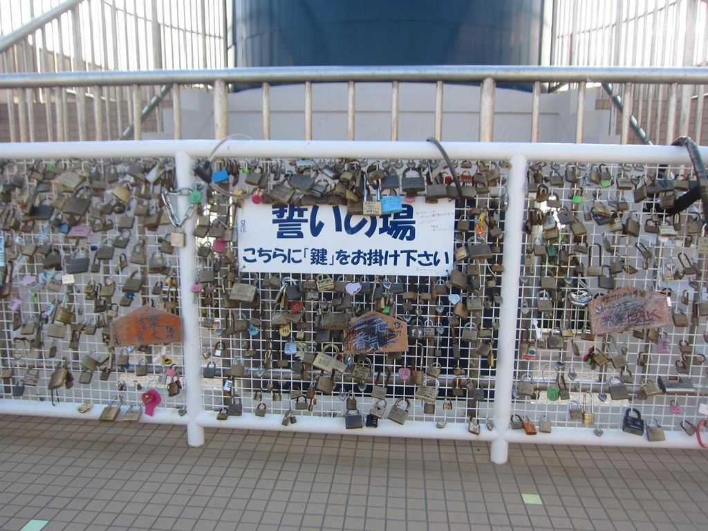 オモシロイのは「女神像 暁風」の前には沢山の南京錠が掛けられている。ここでカップルが誓いをして鍵をかけると「幸せが未来へ続く」と言われ愛が成就すると伝えられているそう。そんな事から「誓いの丘」とも呼ばれています。