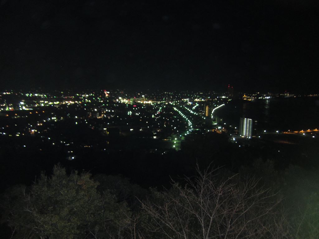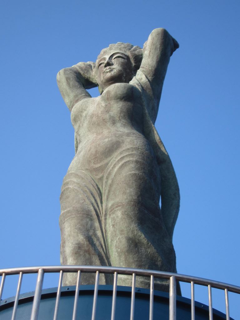 朝と夜と2回、「魚見塚展望台」と呼ばれる場所へ‥。写真は展望台頂上に建つ「女神像 暁風」