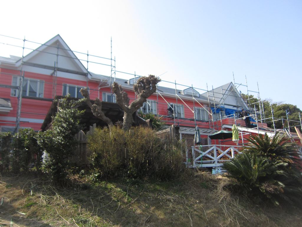 僕らが、お風呂の工事で伺った時、同時に外壁の塗り替えもしてらっしゃいました。