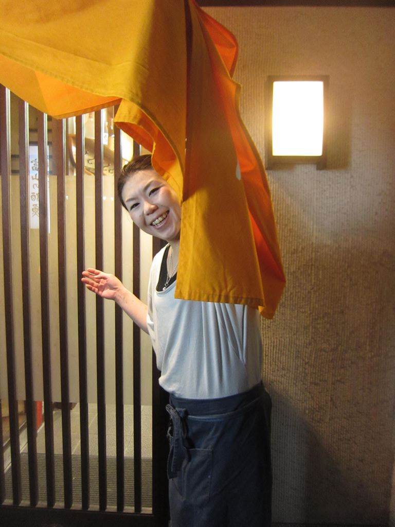 さてこの女性は?お聞きすると「あら川」の総務・調理を担当している大村さん。お客さんのところへ挨拶にまわってたようです。それじゃ写真を1枚と、お願いしたところ快く応じて頂けました。最後はオリジナル地酒「米清 純米酒」。