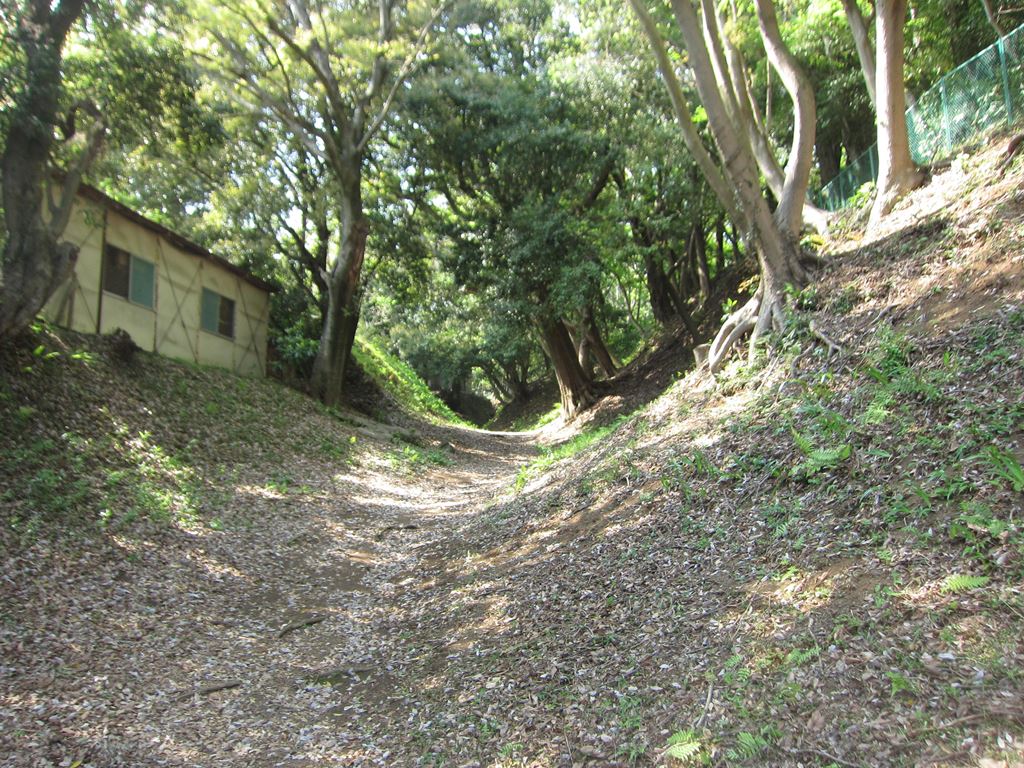 「蓮上院土塁」。やはり「総構」の遺構。「土塁」の窪んだ部分は‥