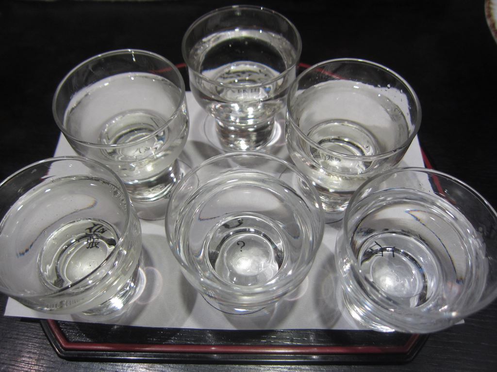 6種の地酒がグラスのお猪口にに入れられて出てきた。涼しげな感じが呑欲をそそります。