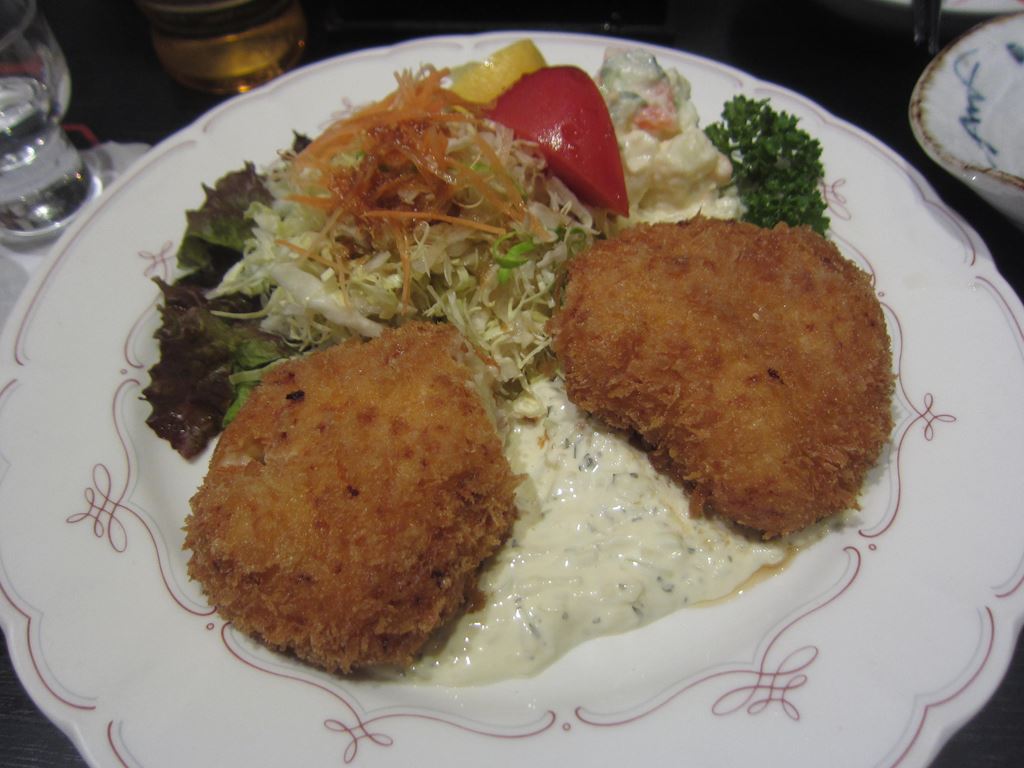 「カニクリームコロッケ」。ここの「カニクリームコロッケ」は名物だそうで確かに旨い。ビールとの相性も良い。