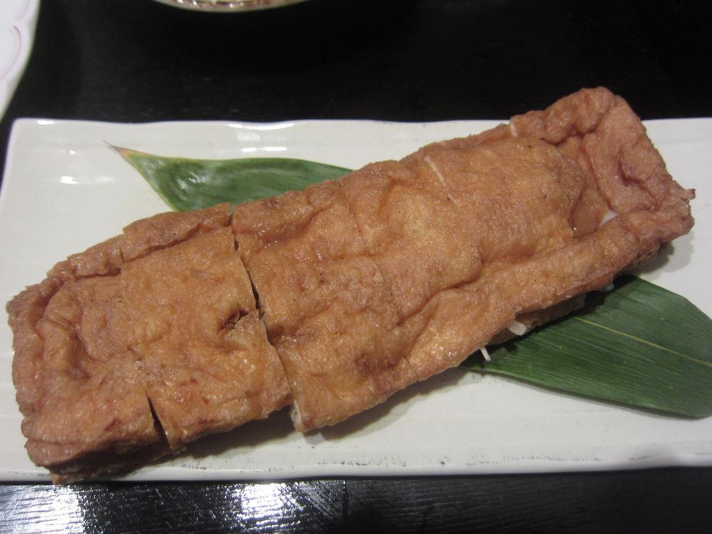 大好物の一品、「栃尾の油揚げネギはさみ」。以上の肴くん達じゃ「銘酒セット」はあっという間になくなってしまう。そこで‥
