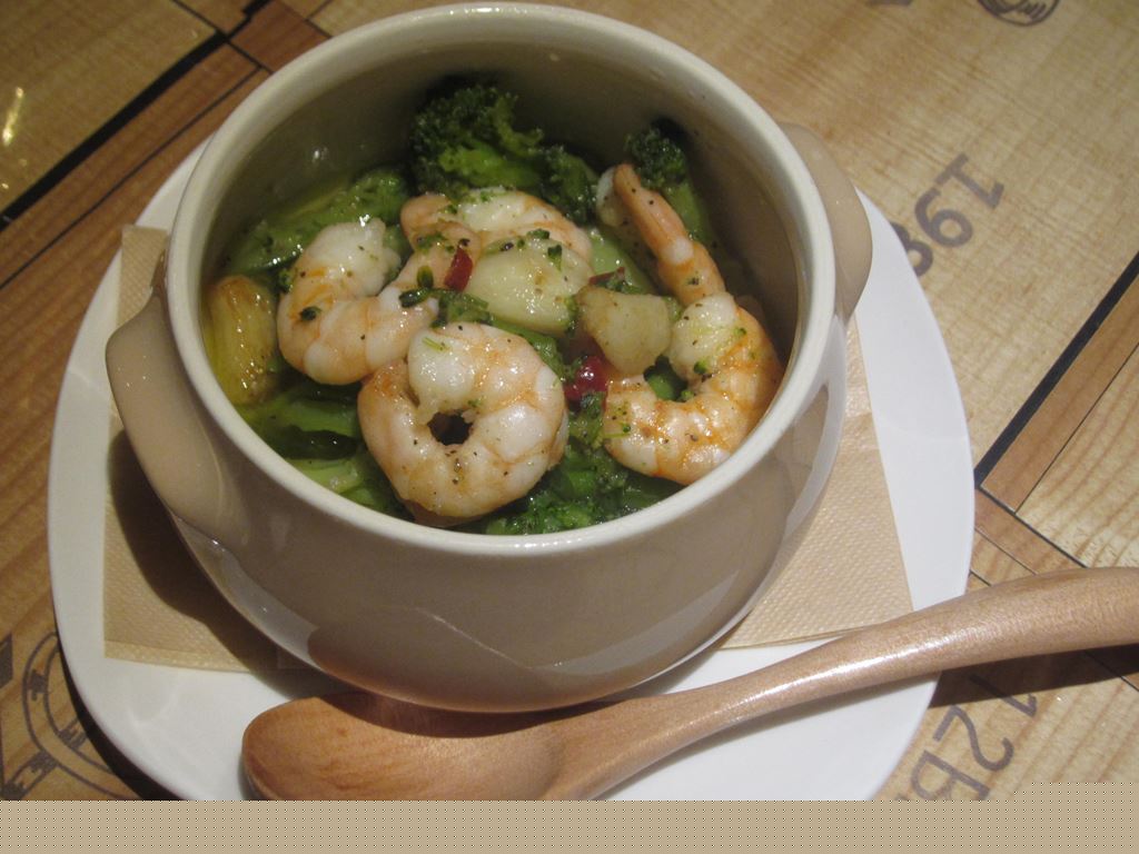 最後に、もう1つのお薦め「ブロッコリーと小海老のアヒージョ」。残ったガーリックオイルを‥
