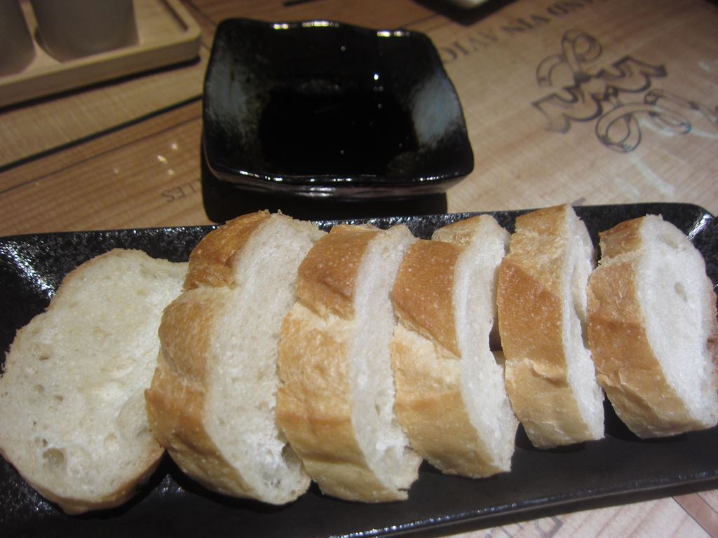 「バケット」に浸して頂く。旨いです!バルサミコソースも付いてきます。