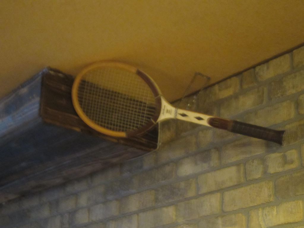 そう言えば気になったので聞いてみました。シンプルな店内にさりげなく飾られたテニスラケットがひとつ。なぜ?