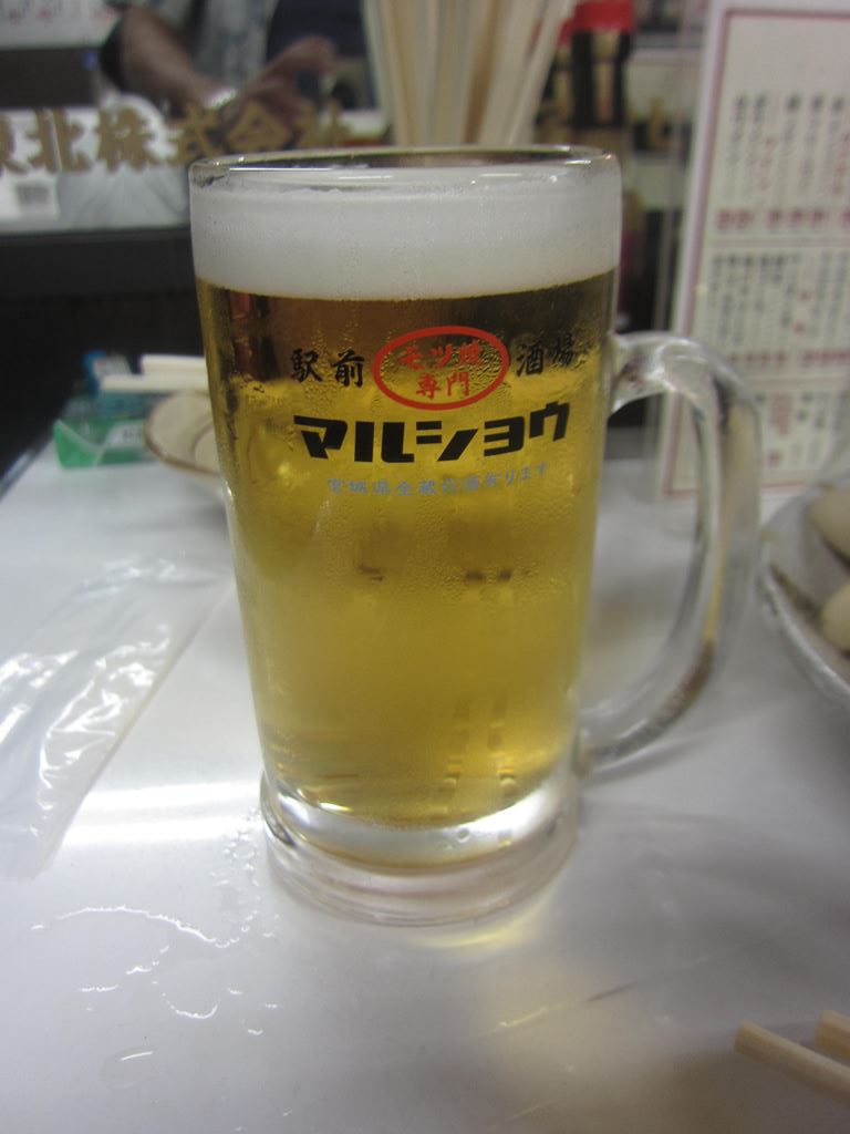 「上タン」。すべて1串¥120。もう1杯飲んだのが「白ハイボール」。¥230。〆て1人¥1,620(税抜き)。噂通りの安さでした。量も質も良いんじゃないでしょうか‥。仙台Nightの1件目でした。