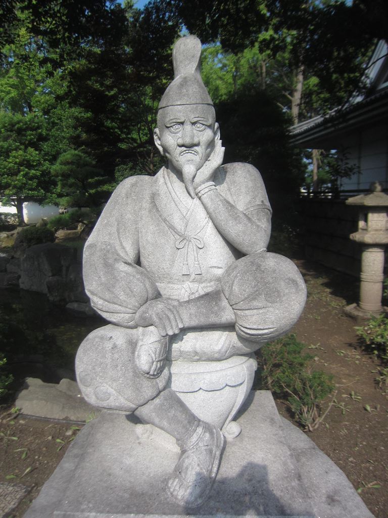「しかみ像」。有名な「三方ヶ原戦役画像」を基に製作された石像。
