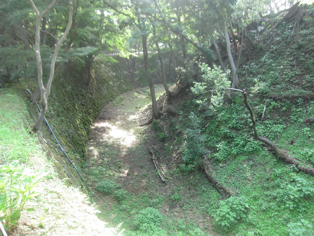 「清海堀」「本丸」北側を防御する為に掘られた空堀。「岡崎城」の素晴らしいのは中世のこういった遺構が良く残っているところ。