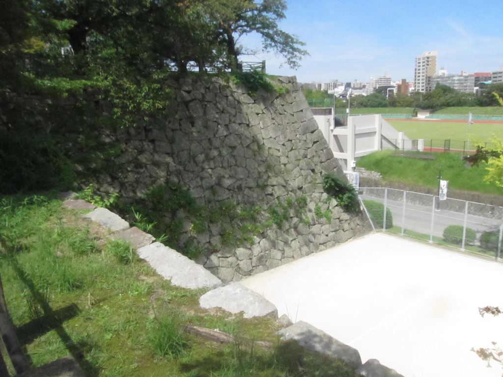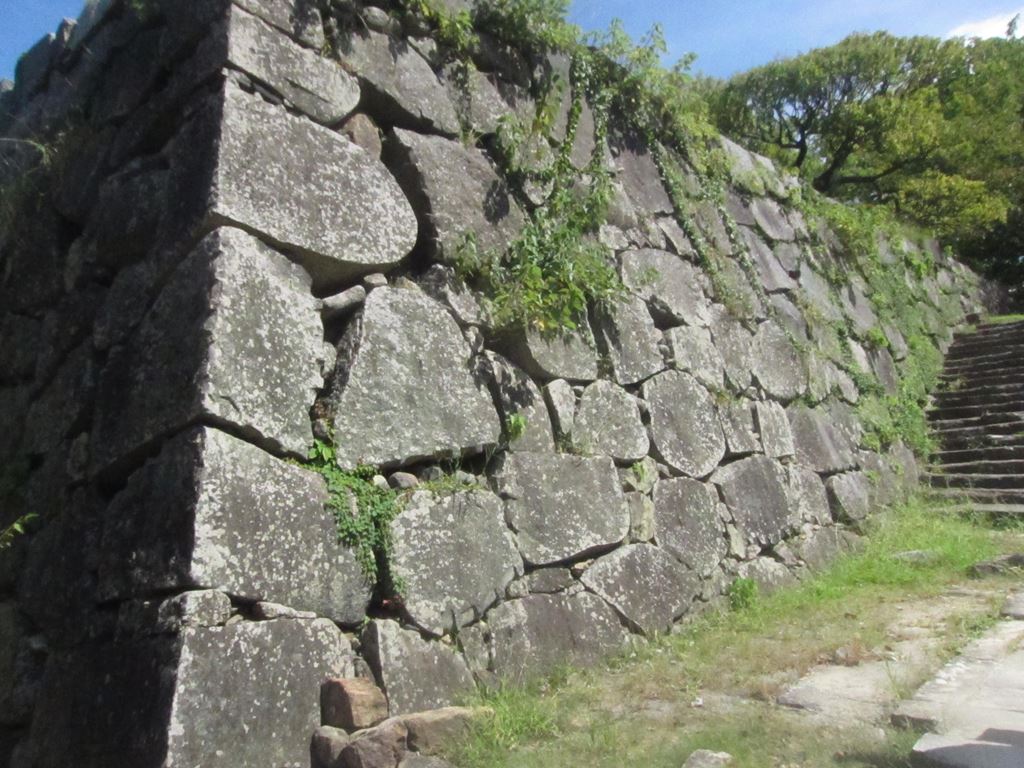 「二の丸」を護る「石垣」。その向うは「三の丸」と「内堀」。