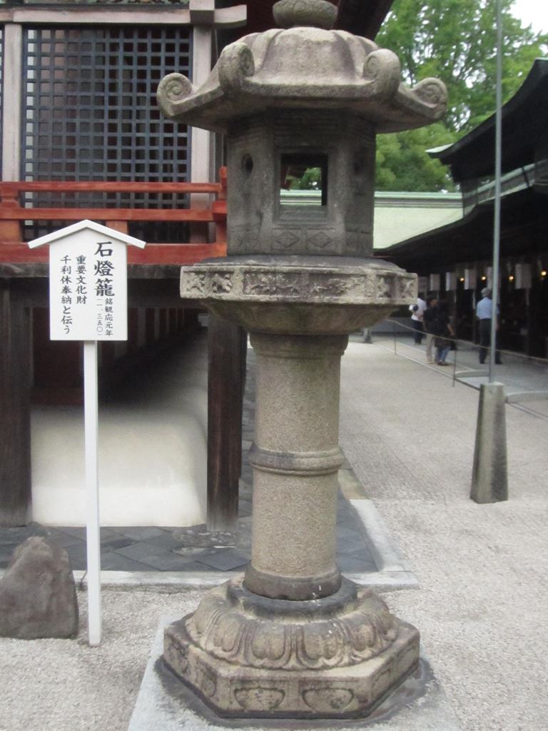 又、本殿脇には「千利休」奉納と伝わる「石燈籠」がある。