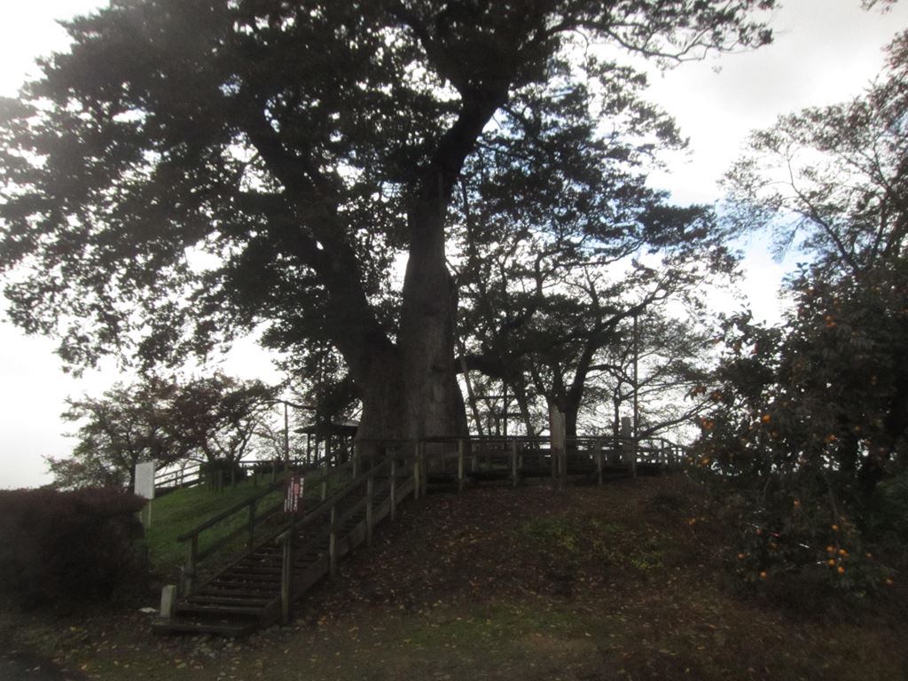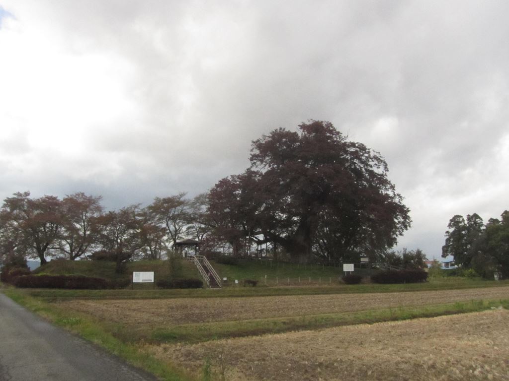 「土塁」上には現在もケヤキの大木がある。「高瀬の大木」と呼ばれ築城前からあったようだ。