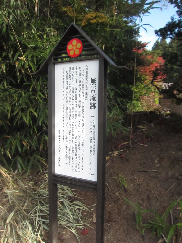 「堂森善光寺」からそう離れていない場所に「無苦庵跡」がある。ここに「利貞」公の暮らした屋敷があった。