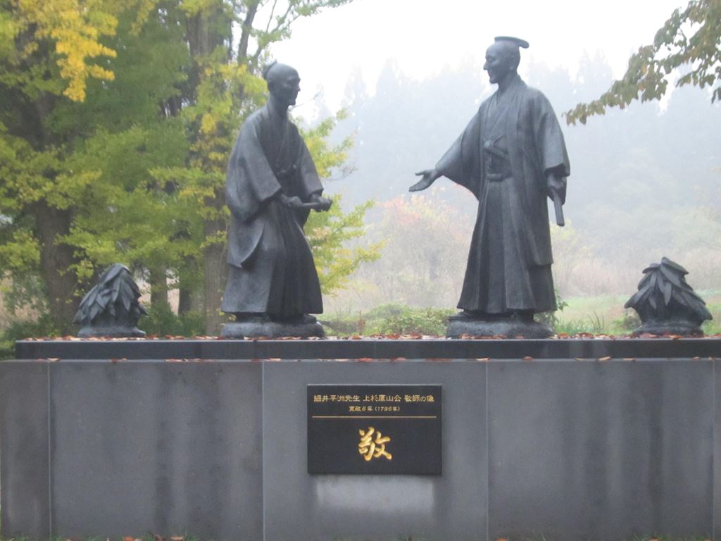 その2人の師弟関係を物語るように「米沢」において「鷹山」公4つ目の銅像が昨年、お披露目された。1796年「鷹山」公が郊外の「普門院」に出向き江戸から訪れた師と約20年ぶりの対面を果たした。