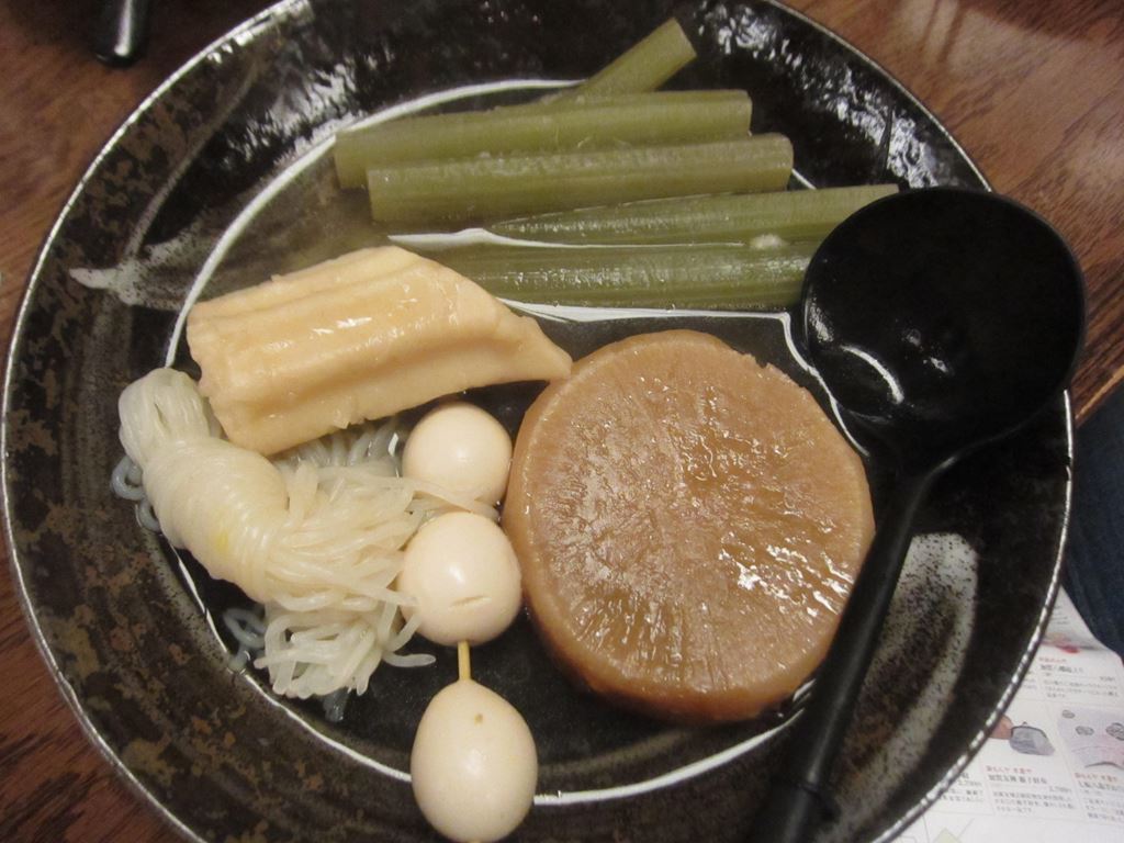 今度は単品で「ふき・ちくわぶ・糸こんにゃく・うずら玉子・大根」。合わせて‥