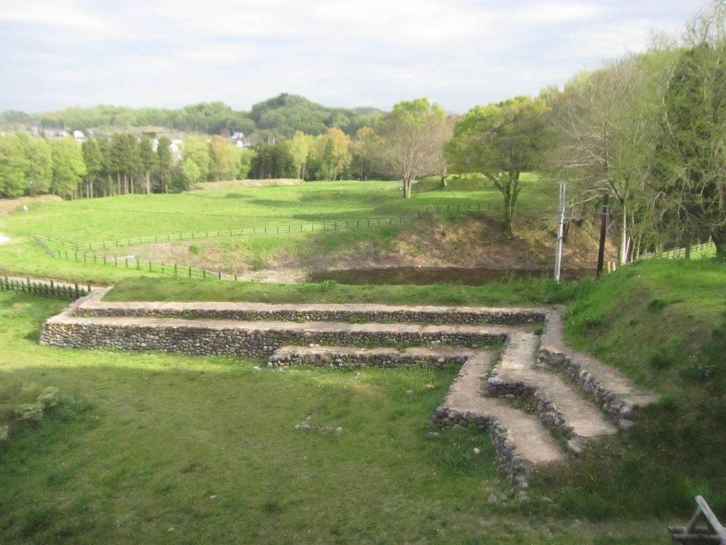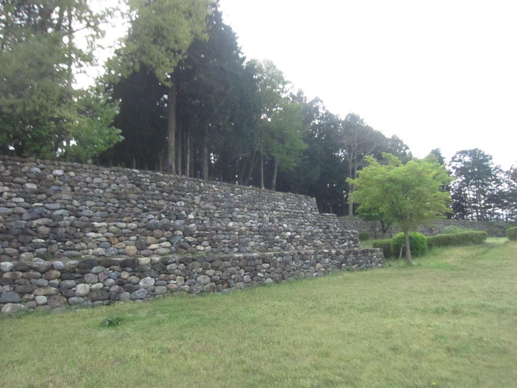 「三の曲輪」にはこれも復元された「石積土塁」が建つ。見た目には簡単に登れそうだが城郭はそうはいかない。結構な段差だ。