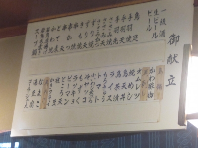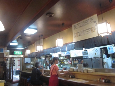 奥行きのある店内にカウンターと小上がりが通路を挟み、赤茶に染った天壁を薄い照明が浮かび上がらせる雰囲気は僕の一番の好み‥。昭和がここにもありました。