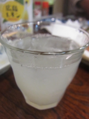 ここで酒を変えようと気になる物を一杯頂きました。呉市の酒蔵「千福」が仕込んだ「ウキウキレモン酒」。それをソーダ割りで。僕は元来、広島酒びいきなので不味いはずがありません。旨いな~。