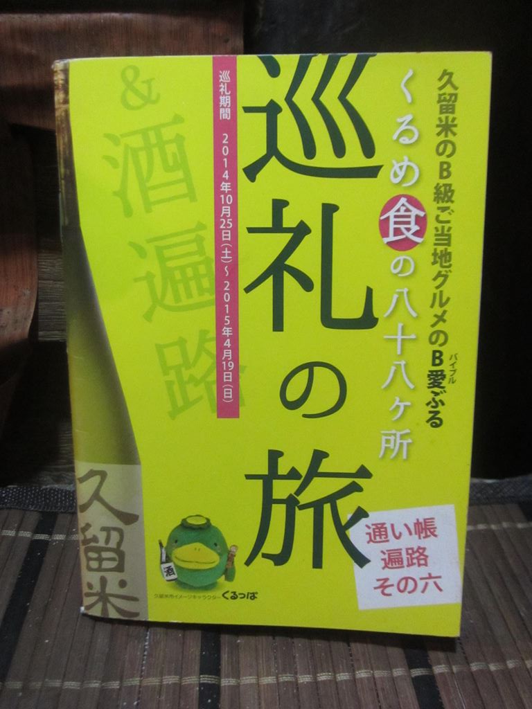 坂田さんだったようです。写真の「通い遍路その六」を坂田さんから頂きました。今回は「その七」の取材だったようです。詳しくガイドされていて確かにグルメのバイブル。 久留米を訪ねるにはかなり役立ちそうです。http://www.b-kurume.com/88kasho2012-2013/3-10_yataikingu.html