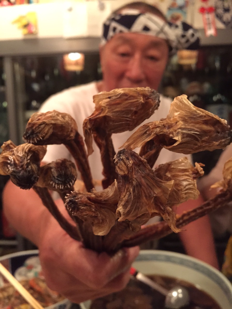そしてこちらの2人が「まき子氏」の敬愛する「おとうちゃん」に「おかあちゃん」。確かにお二人とも愛想が良すぎる。ここに来た理由(勝手ながら「まき子氏」のブログを見てとお伝えして)と有明海の珍味を所望したいと伝えてから‥
