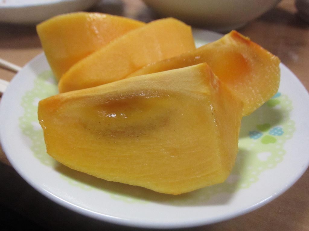 女将さんが剥いてくれた柿は甘くて最高。僕らの為に良いのを残しておいてくれたそうです。有難うございます。