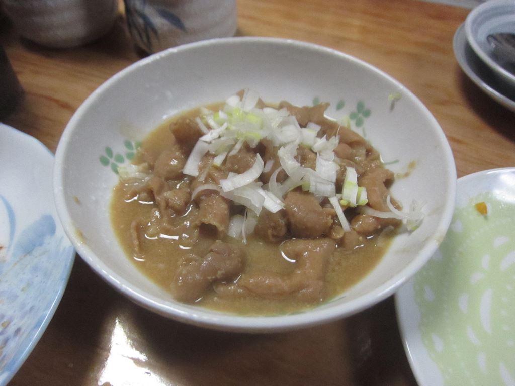 隣の常連さん(やまちゃん)が奨める「豚もつ煮」。ホントは豆腐が入ってるのに抜いてもらうのがポイントだそう。「豆腐嫌いだし」。これやまちゃんの言い分です。豚もつ旨い!だけど豆腐はやはり入ってた方が良いな~。