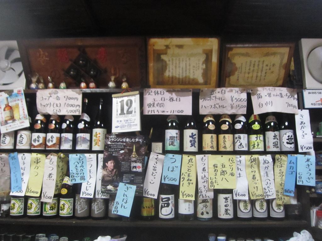 カウンター中央の良い席に座らさてもらいました。見上げれば山梨の地酒が‥。ワクワクしますね~!