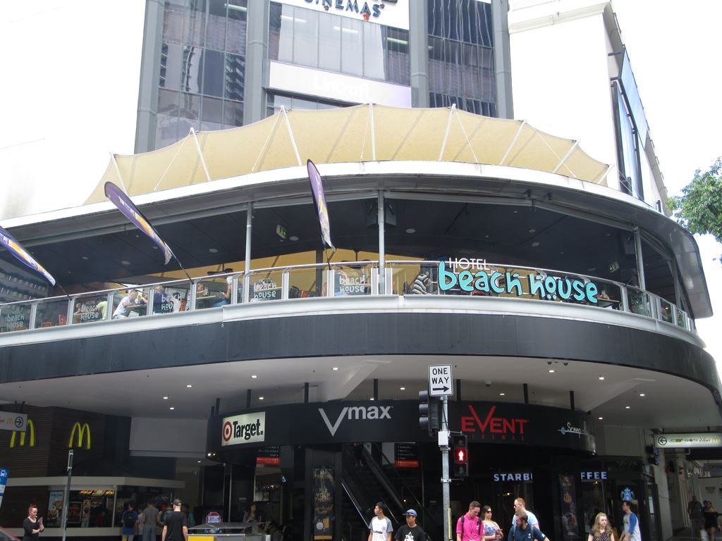 「beach house」。ブリスベンのシティーと呼ばれる中で最も賑わっている場所にあるが海はまったく感じない‥。しかしbeach houseとは興味深い。