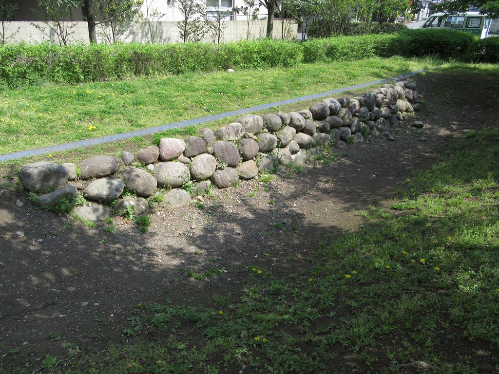 「二の丸裏門」は「土橋」だったようである。「土橋」の「石垣」部分が復元されている。本物は地下に眠っている。