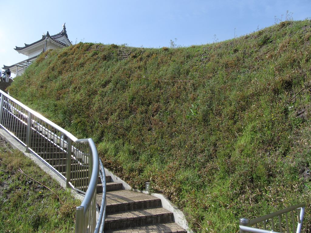 「富士見櫓」と「清明台」を繋ぐ「土塁」の上を歩けるのは、さながら武者になった気分。