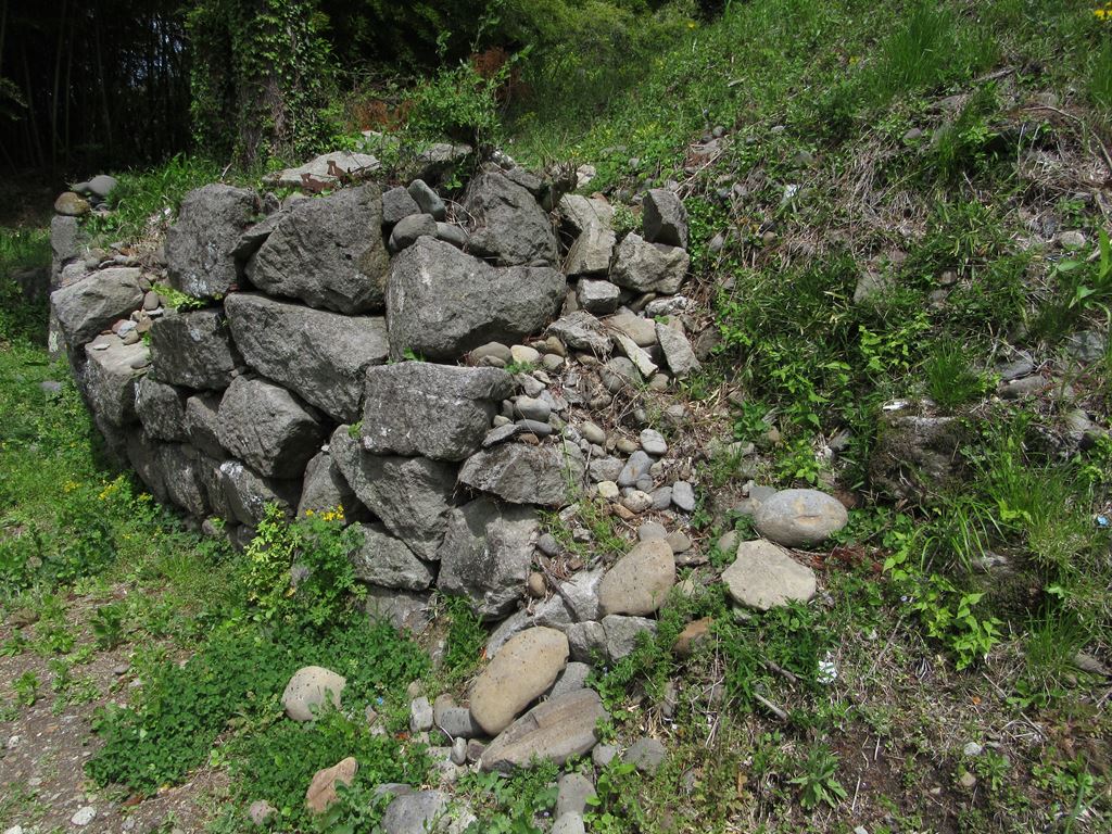 北側にも積み上げられた「石垣」が部分的に残っている。