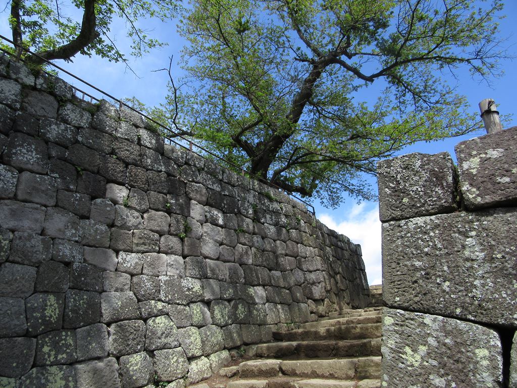 「本丸」を囲む「多聞櫓跡」。この「石垣」の上にかつては「櫓」がのっていた。