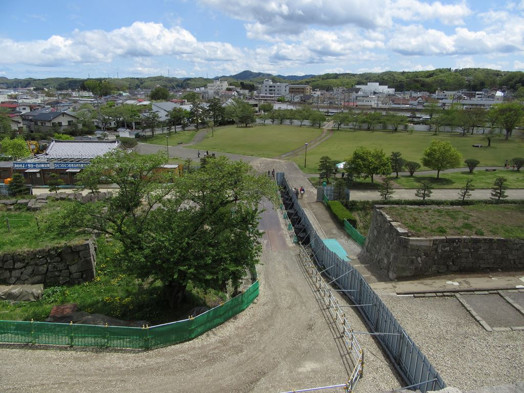 「多聞櫓跡」から「清水門」方向。その先の芝生部分が「二の丸」。